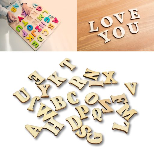 Fa betűk natúr 2cm 26betű/csomag – festéshez, dekorációhoz