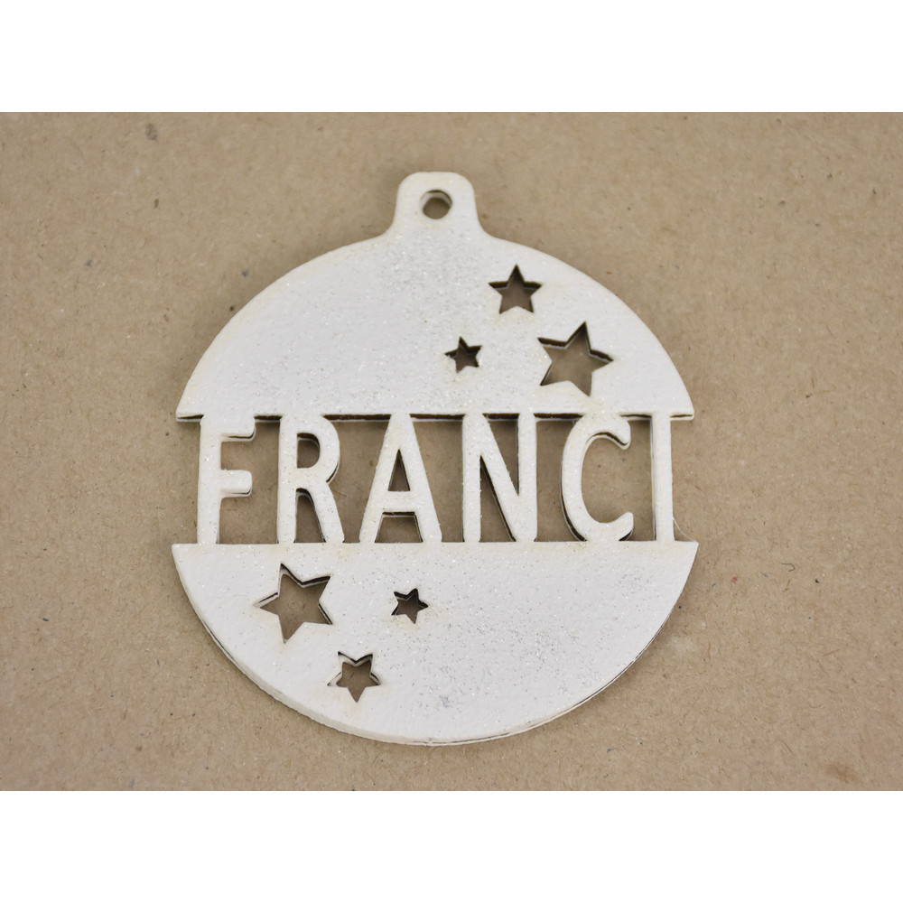 Fa - Egyedi névre szóló karácsonyfa dísz csillámos fehér – karácsonyi koszorúhoz és asztaldíszhez