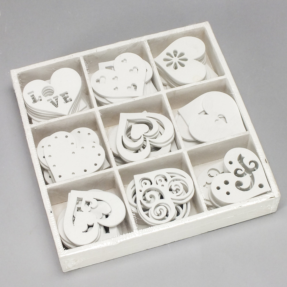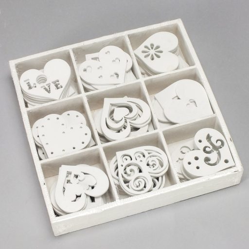 Fa fehér szívek dobozban 90db/doboz – valentin napi ajándékhoz és romantikus dekorációhoz