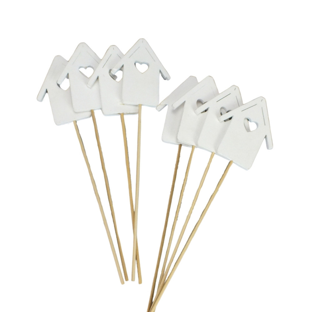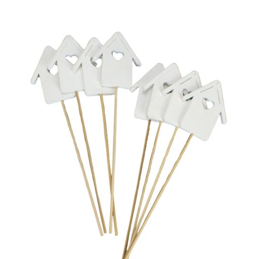 Fa házikók pálcás fehér 7x28cm 8db/csomag – húsvéti és tavaszi dekorációhoz