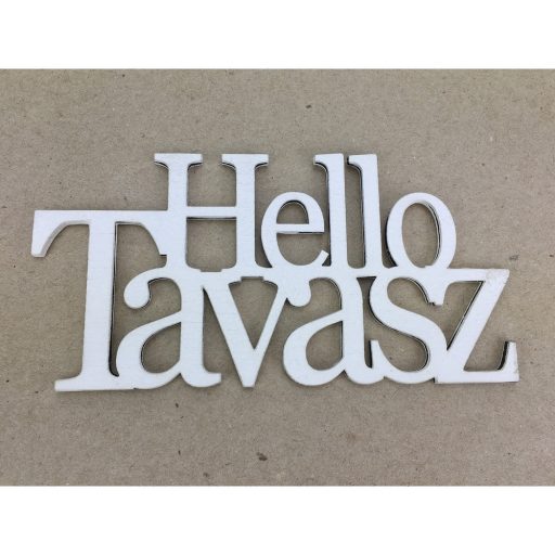 Fa - "Hello Tavasz" felirat koszorúra fehér 7x14cm – koszorúhoz és asztaldíszhez