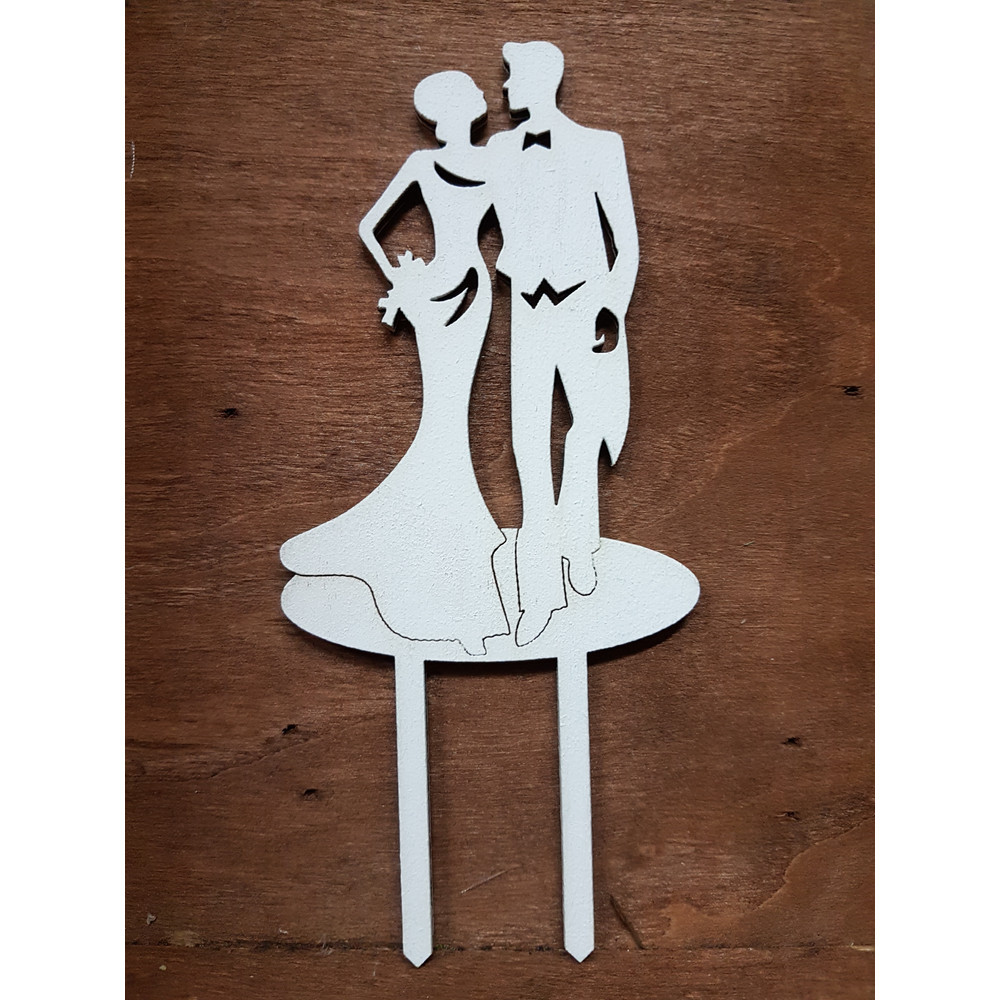 Fa - Jegyespár tortadísz fehér 15cm – esküvői és kerti parti dekorációhoz