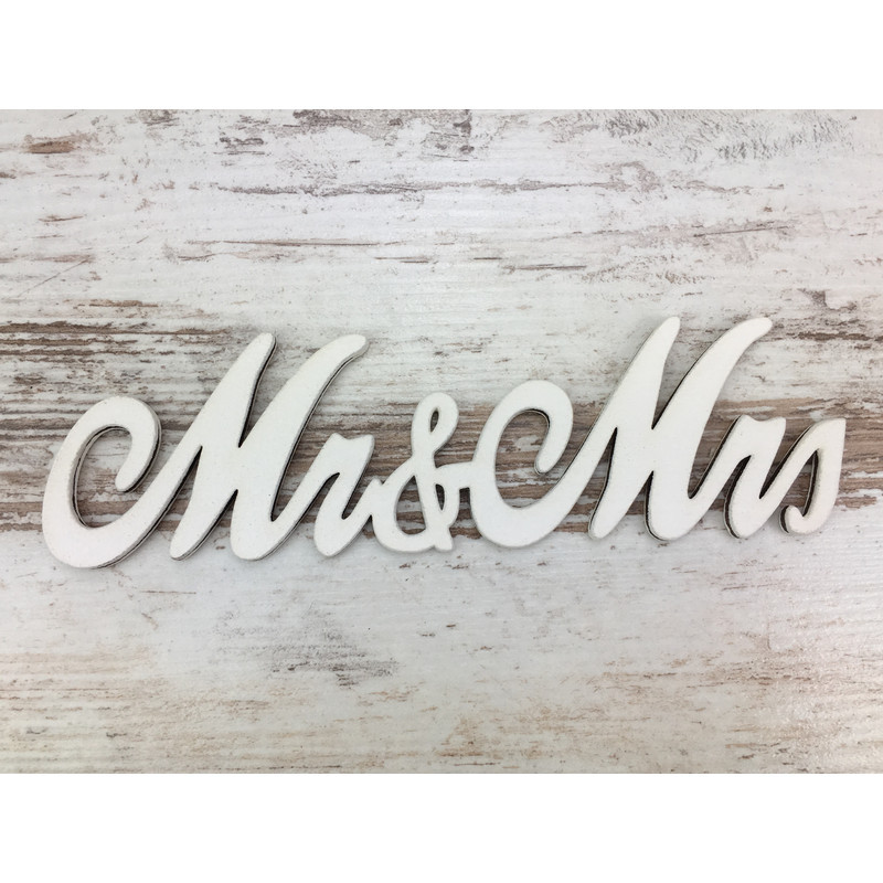 Fa - "Mr & Mrs" irott felirat fehér 14,5cm – festéshez, dekorációhoz