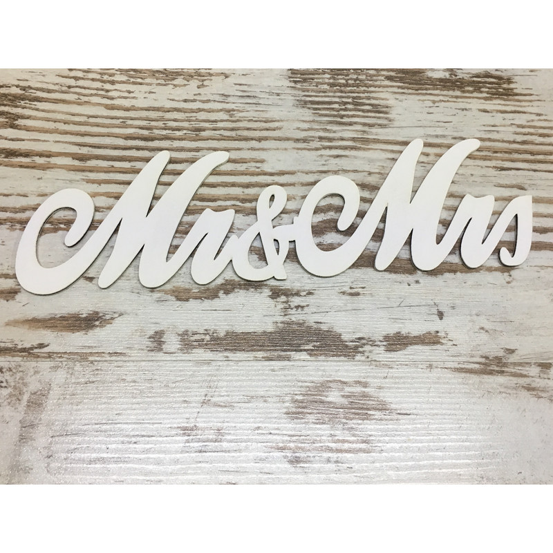 Fa - "Mr & Mrs" írott felirat  fehér 30cm – festéshez, dekorációhoz