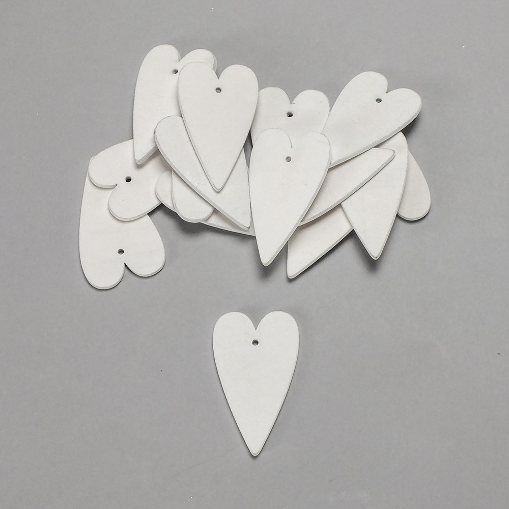 Fa szív hosszú fehér 6cm 15db/csomag – festéshez, dekorációhoz