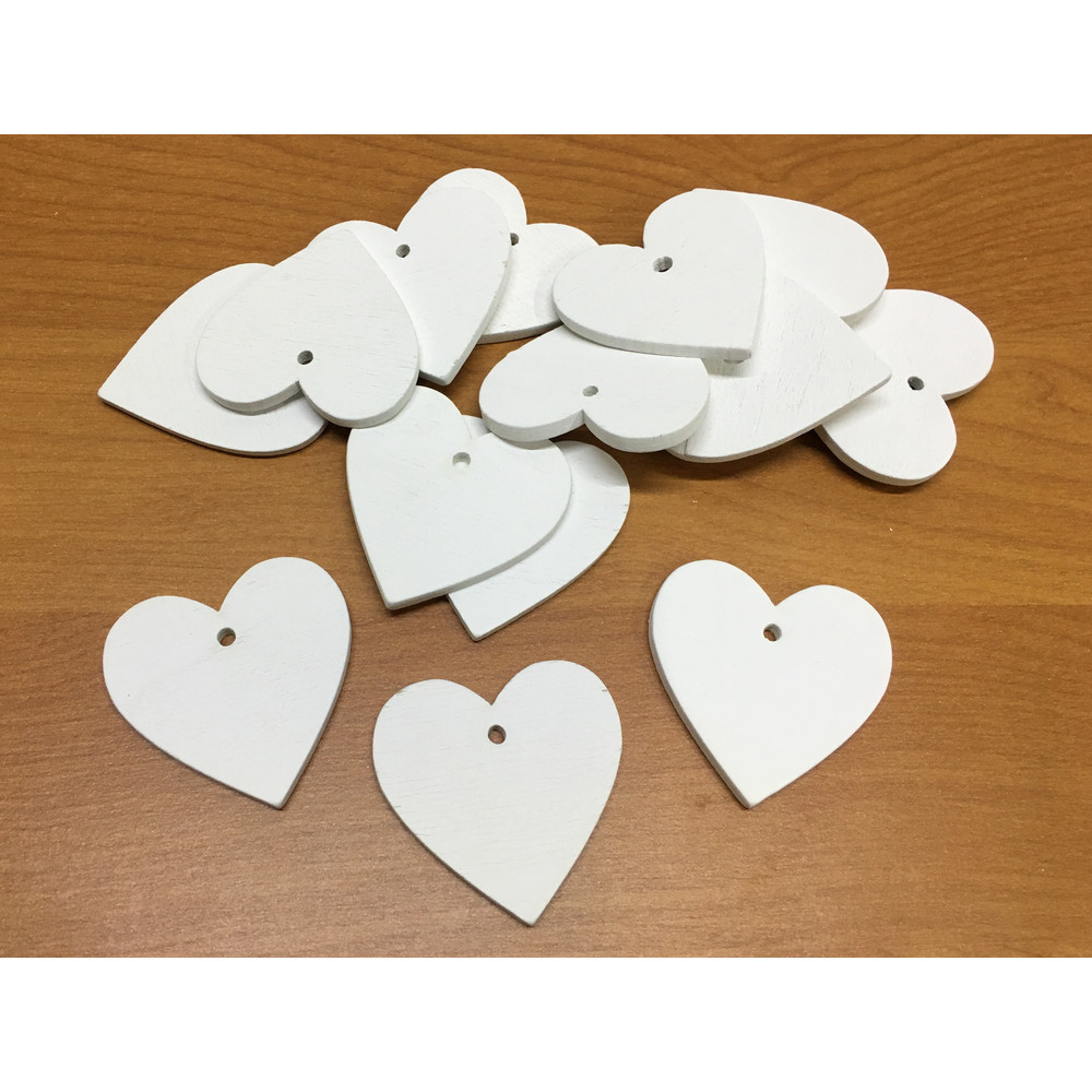 Fa szívek fehér 4cm 15db/csomag – festéshez, dekorációhoz