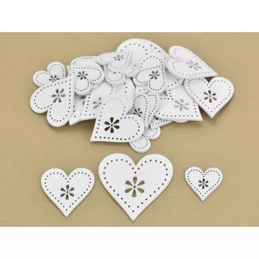 Fa virágdíszes szív fehér 30db/csomag – anyák napi ajándékhoz és dekorációhoz