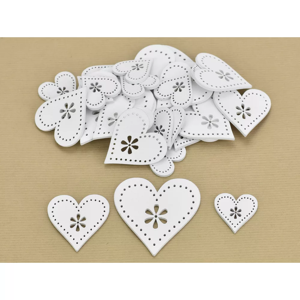 Fa virágdíszes szív fehér 30db/csomag – anyák napi dekorációhoz