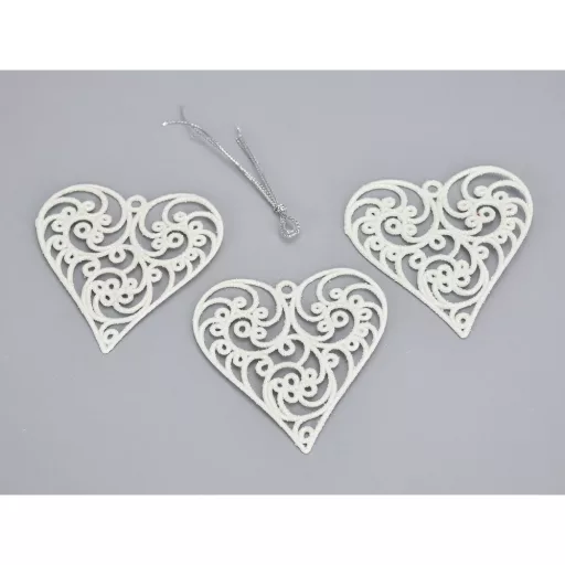 Fehér áttört szív csillámos 3db/csomag – karácsonyfára és ünnepi dekorációhoz