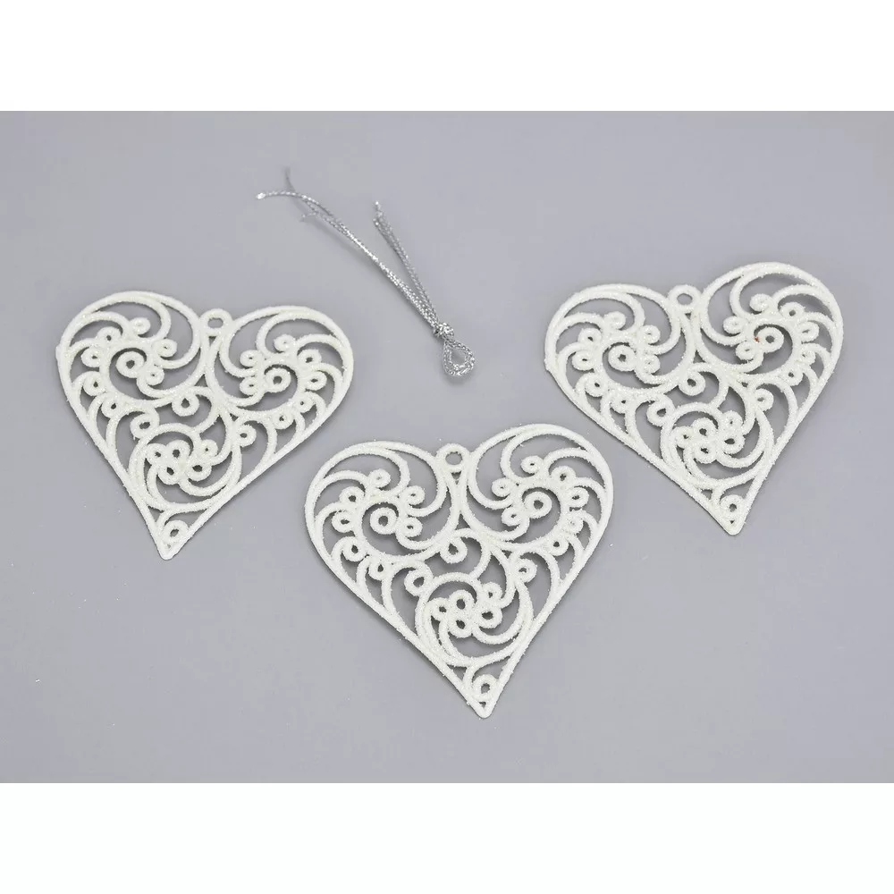 Fehér áttört szív csillámos 3db/csomag – karácsonyfára, dekorációhoz