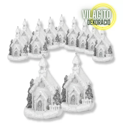 Fehér-ezüst világítós templom kicsi 12db/dob - OKOS ÁR! – karácsonyi dekorációhoz