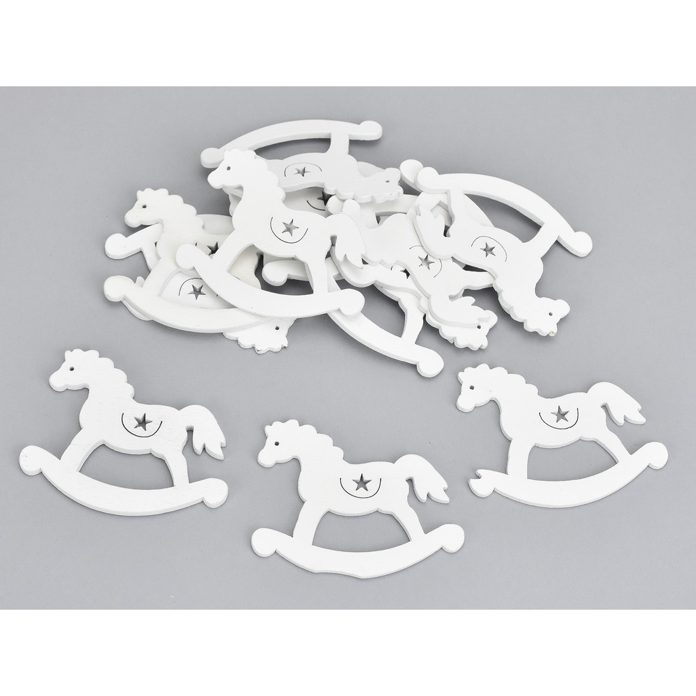 Fehér fa retro hintaló 12db/csomag – karácsonyi koszorúhoz és asztaldíszhez