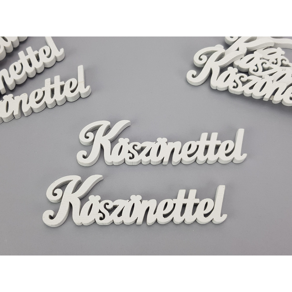 Fehér "Köszönettel" felirat 9cm 8db/csomag – feliratként és tábladíszként