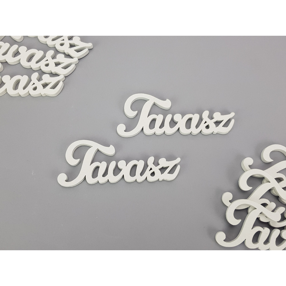 Fehér "Tavasz" felirat 9cm 8db/csomag – húsvéti és tavaszi dekorációhoz