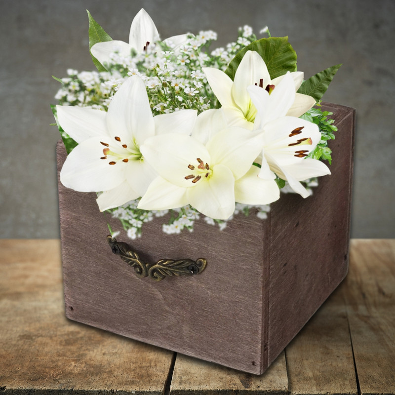 Fiók dekoláda rusztikus kocka fém fogantyúval 9*9*8cm – festéshez, decoupage technikához