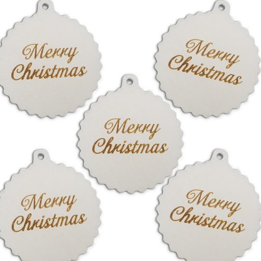 Merry Christmas feliratos fodros fehér tábla, akasztós lyukkal. 5db/csomag.Használható karácsonyfára, vagy ünnepi dekorációkhozÁtmérő: 6cm, vastagság: 2mm