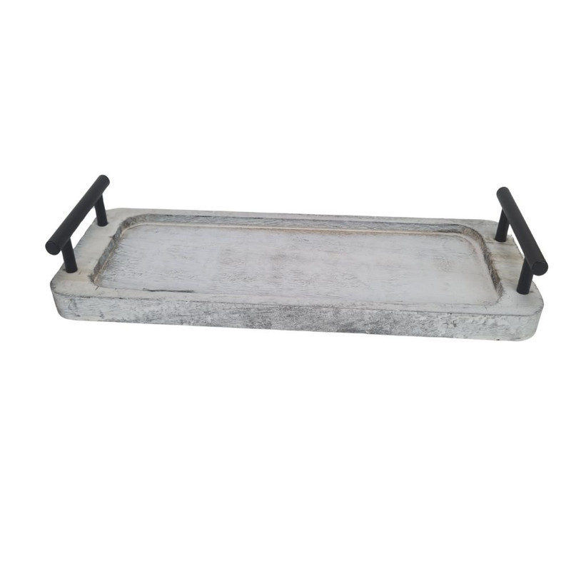 Fogantyús fa tálca vintage fehér 35x12cm  – koszorúkészítéshez