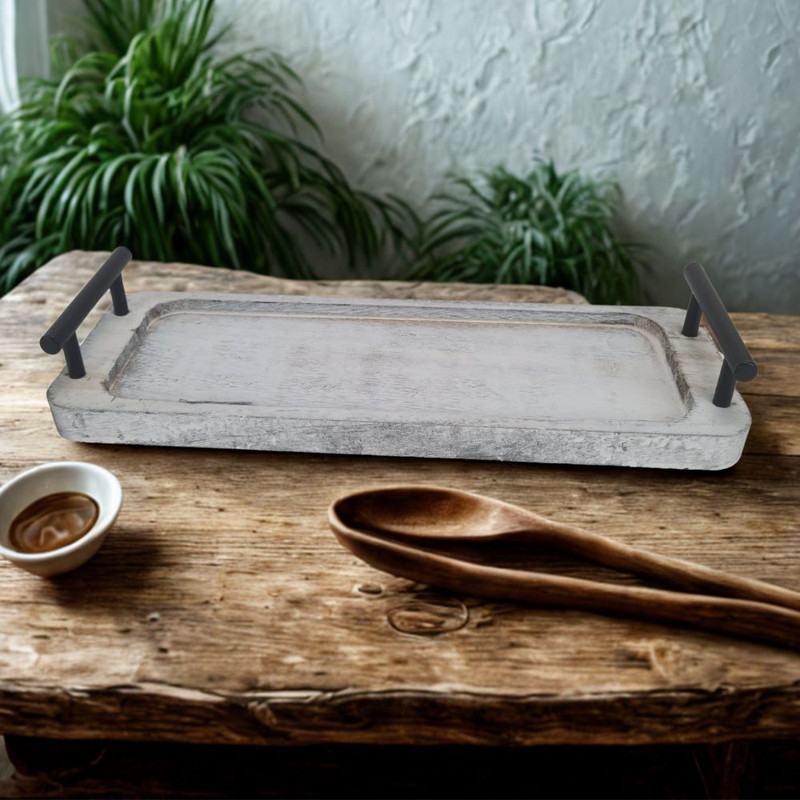 Fogantyús fa tálca vintage fehér 35x12cm – koszorúkészítéshez és ajtódíszhez