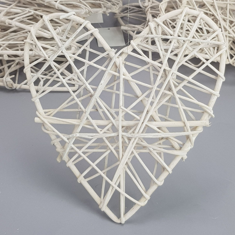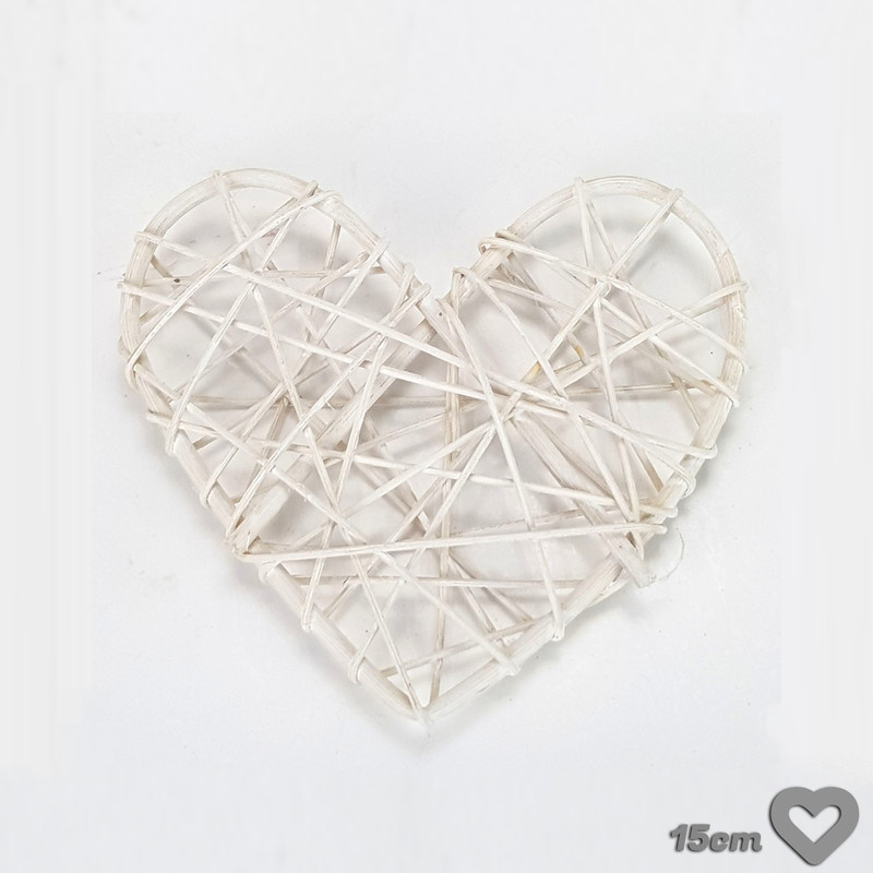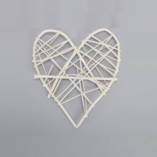 Vesszőből készített szív formájú dekor alap, hálósan dekorált vesszővel.Méret: 15cm, vastagság: 20mm. Felhasználható esküvői és kerti parti dekorációhoz, asztaldíszhez. Virágokkal, szalaggal és egyéb ünnepi kellékekkel k