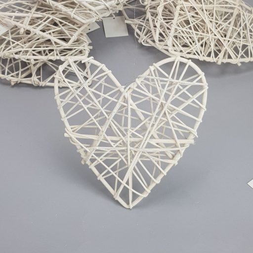 Vesszőből készített szív formájú dekor alap, hálósan dekorált vesszővel.Méret: 20x20cm, vastagság: 20mm. Felhasználható esküvői és kerti parti dekorációhoz, asztaldíszhez. Virágokkal, szalaggal és egyéb ünnepi kellékekke