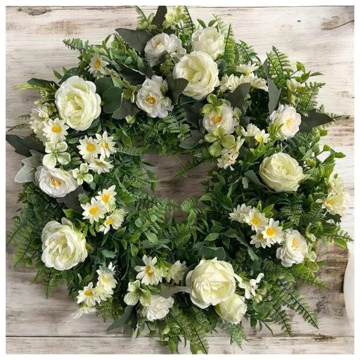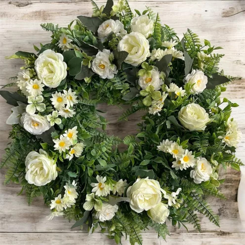 Egyszerű, gyors és időtálló szépség! Készítsd el saját kezed munkájával ezt a 45 cm-es, friss és üde tavaszi koszorút, amely tökéletes választás ajtódísznek vagy otthonod dekorálására! Az előre zöldelt alapnak köszönhetően az alkotás gyors és könnyű, így bárki elkészítheti, akár kezdőként is. A letisztult fehér rózsák és margaréták természetes, időtálló eleganciát kölcsönöznek a koszorúnak. Kinek ajánljuk? DIY Alkoss és Relaxálj vásárlóknak:Kreatív kikapcsolódásra vágysz, de nem akarsz órákig bajlódni az alapozással? Ez a csomag tökéletes neked! Az előre zöldelt alap miatt csak a virágokat kell elhelyezned, így minimális idő alatt is lenyűgöző dekorációt készíthetsz. Praktikus Dekorálóknak:Szeretnéd gyorsan és egyszerűen feldíszíteni otthonod? Ez a koszorú tökéletes választás, mert kevesebb időráfordítással is prémium megjelenést biztosít. Az esztétikus, harmonikus virágkompozíció garantáltan elegáns kiegészítője lesz enteriőrödnek. Ajándékozóknak:Saját készítésű, időtálló ajándékot keresel szeretteidnek? Ez a koszorú tökéletes választás! Az üde, fehér virágok és a zöldek időtlen szépséget sugároznak, így akár esküvői, keresztelői vagy egyéb különleges alkalomra is kiváló meglepetés lehet. Mit tartalmaz a csomag? ️ Előkészített, dús zöld alap, amely megkönnyíti és felgyorsítja az alkotást️ Prémium minőségű fehér selyemrózsák és margaréták a kifinomult, természetes hatásért️ Egyszerűen összeállítható design, amely kezdőknek is könnyed sikerélményt ad️ Lépésről lépésre útmutató, amely segít az összeállításban