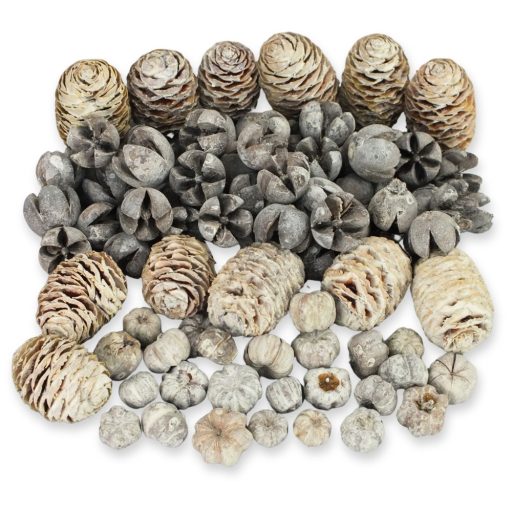 Elegáns, téli hangulatú termésválogatás, amely hamvas tobozokat, tökbogyókat, és tulipán terméseket tartalmaz. Tökéletes alap adventi koszorúkhoz, karácsonyi asztaldíszekhez vagy bármilyen ünnepi dekorációhoz. Finom, derengő színei és a lágy „havas” hatás harmonikus, meghitt hangulatot teremtenek.