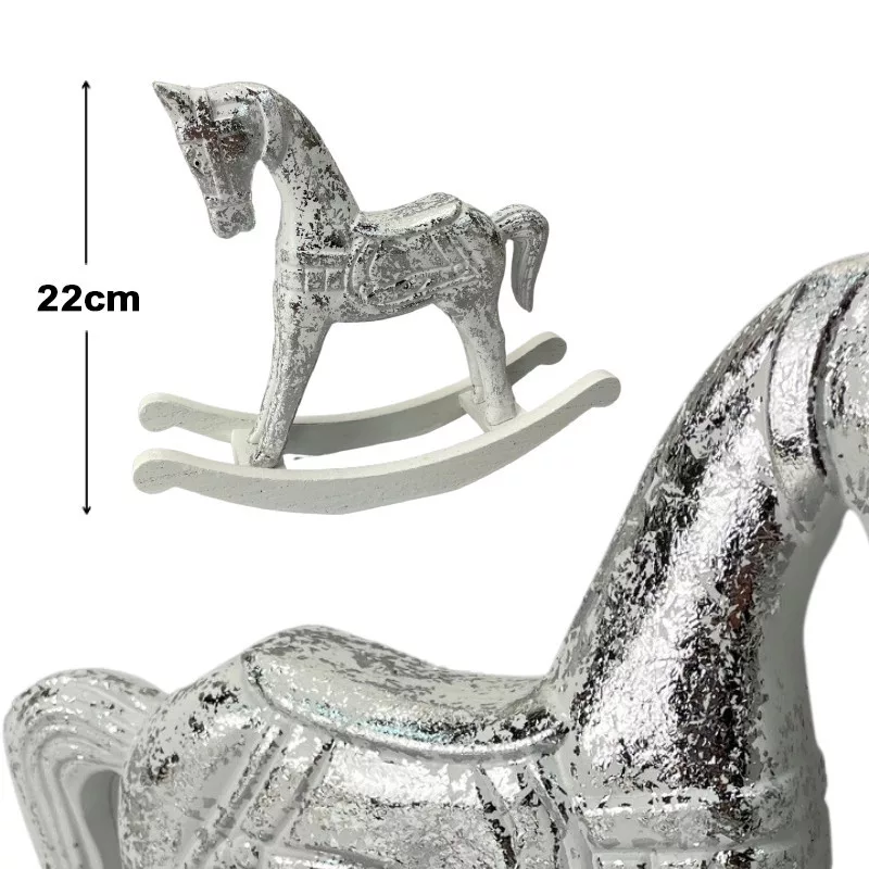Hintaló nagy - fehér-ezüst – karácsonyi dekorációhoz