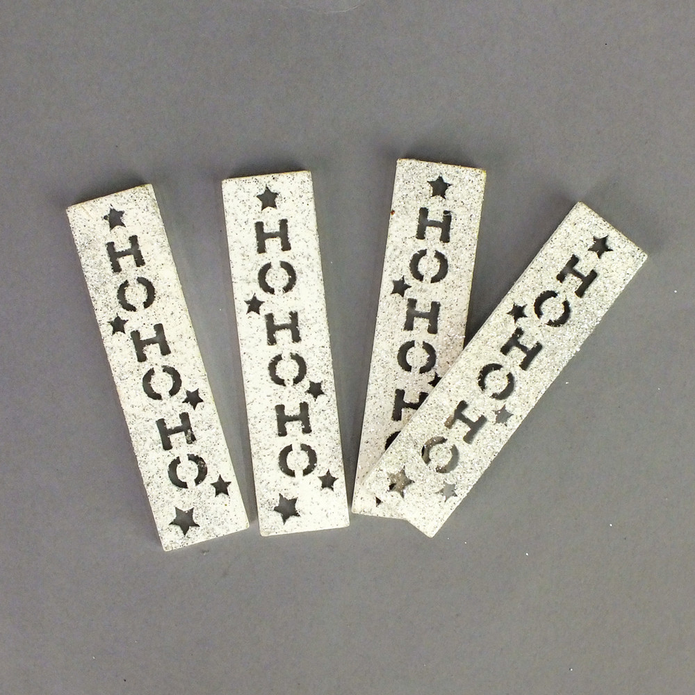 HOHOHO feliratos biléta 4db/csomag - ezüst csillámos – karácsonyi koszorúhoz és asztaldíszhez
