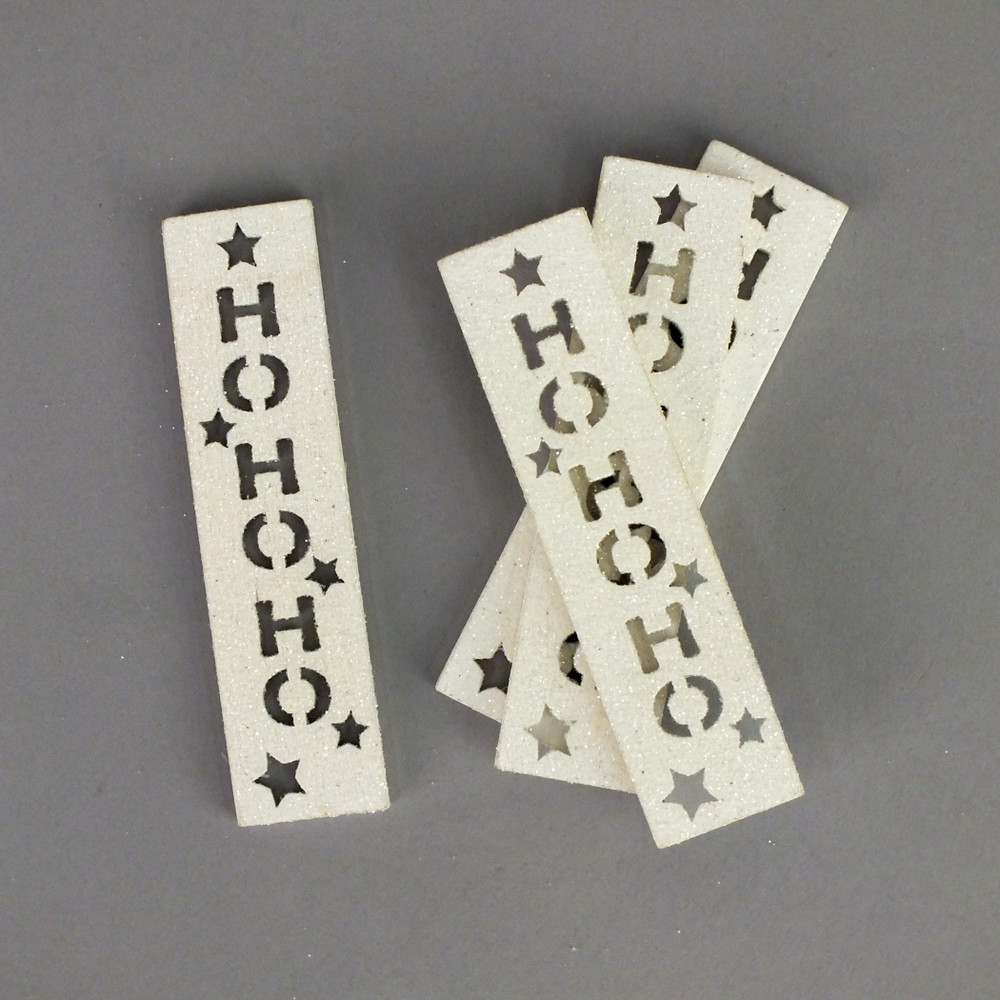 HOHOHO feliratos biléta 4db/csomag - fehér csillámos – karácsonyi koszorúhoz és asztaldíszhez