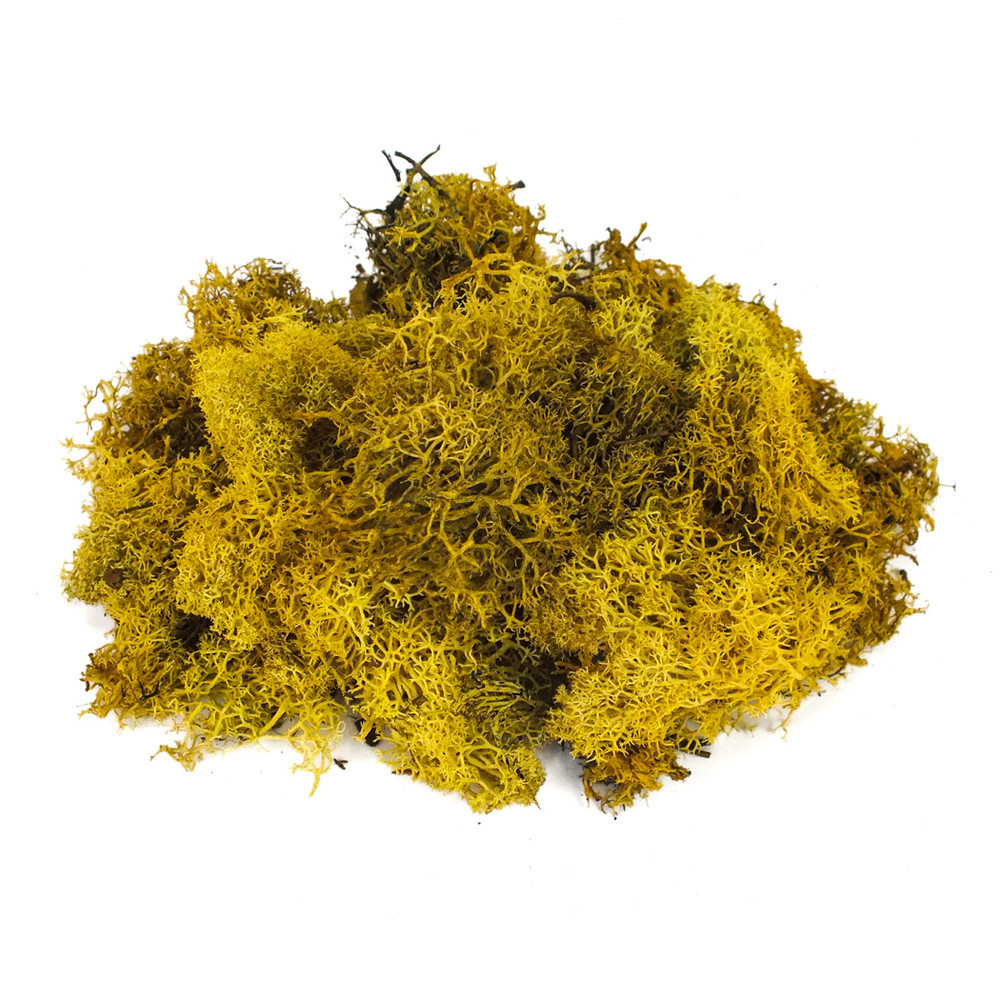 Kreatív ötletekhez, kötészeti kompozíciókhoz, tömítő anyagként és díszítő elemként is használható, sárga színű izlandi zuzmó. Állaga: nedves. Árnyalatnyi színkülönbségek előfordulhatnak.