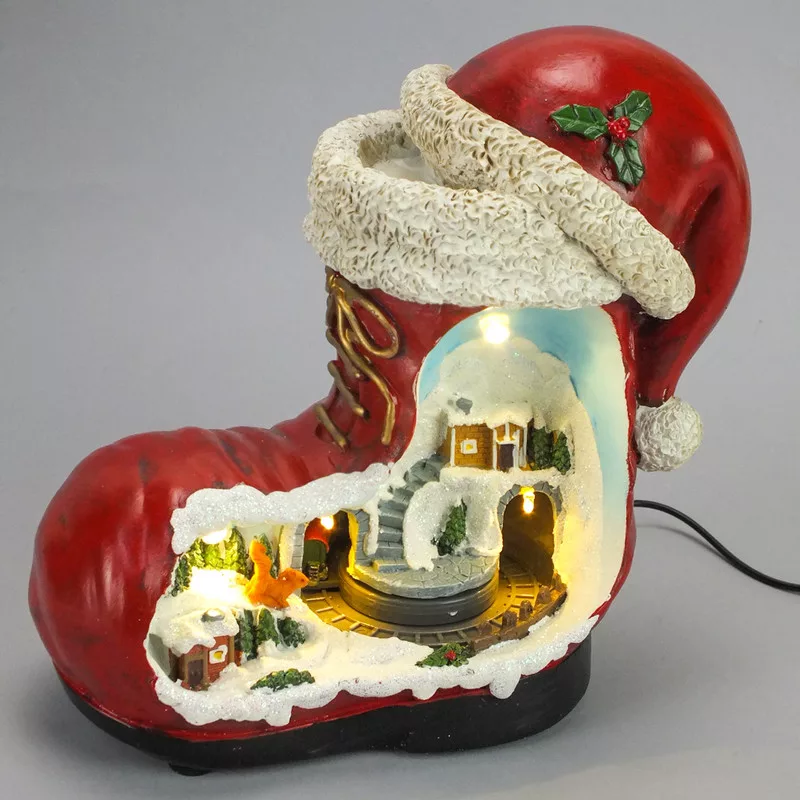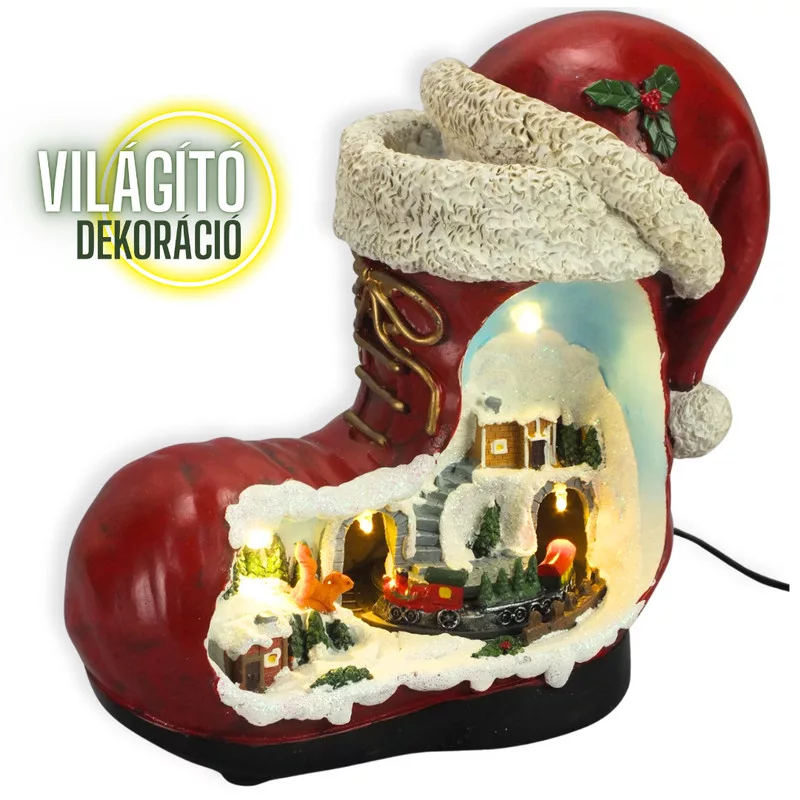 Karácsonyi csizma lak korcsolyázókkal világítós-zenélős  – karácsonyi dekorációhoz