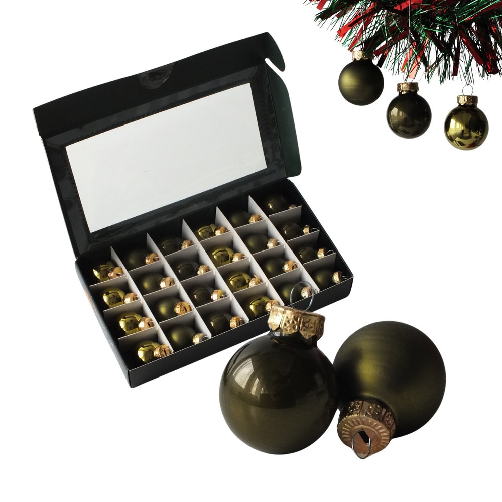 Karácsonyi üveggömb kicsi 24db/csomag oliva – karácsonyi koszorúhoz és asztaldíszhez
