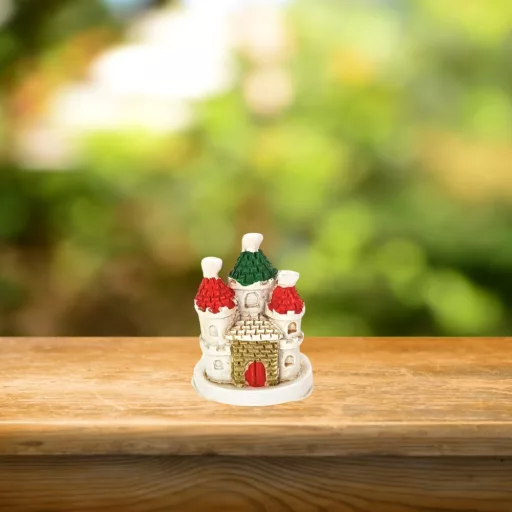 Színes mini poly kastély, kisebb otthoni dekorációk kiegészítő elemeként.A termék ára 1db figurára értendő! A kastély típusa nem választható, a rendelésekbe minden esetben a soron következő kerül.Méret: 4x3cm, mag.:5,5cm. Felhasználható karácsonyi asztaldíszhez, koszorúhoz és ünnepi dekorációhoz.