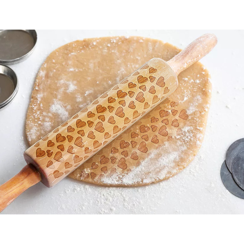 Kekszmintázó sodrófa - Szíves 38cm – karácsonyi díszítéshez és dekoráláshoz