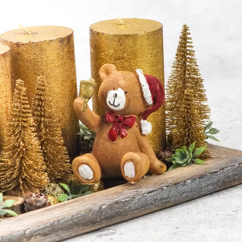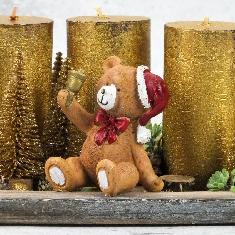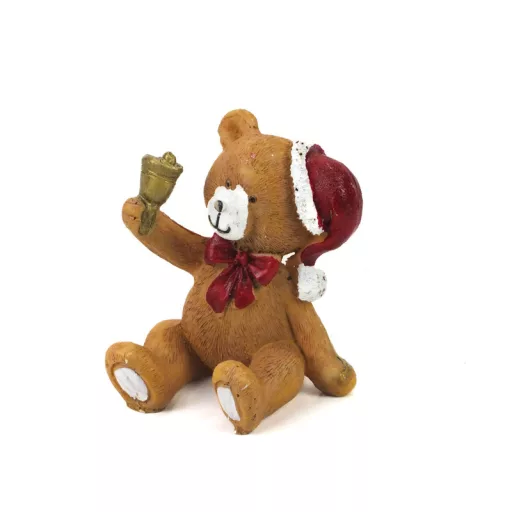 Kerámia barna ülő piros sapkás maci csengővel – karácsonyi dekorációhoz