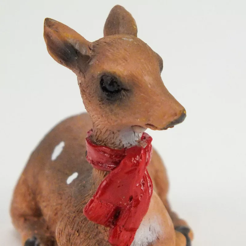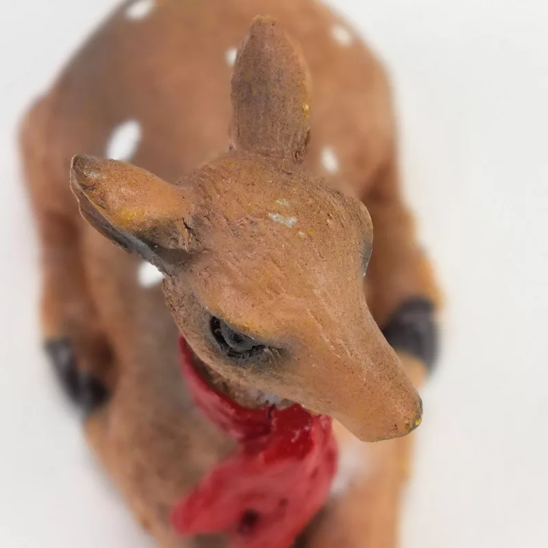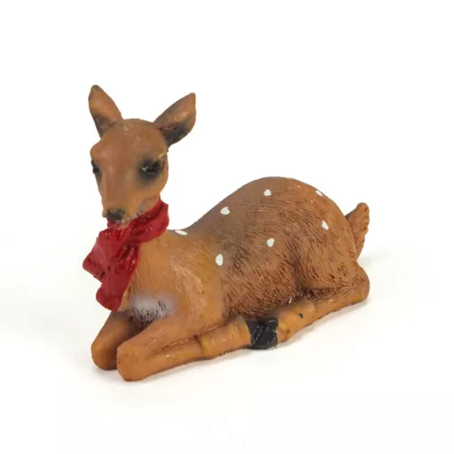 Kerámia fekvő barna őzike sállal – karácsonyi dekorációhoz