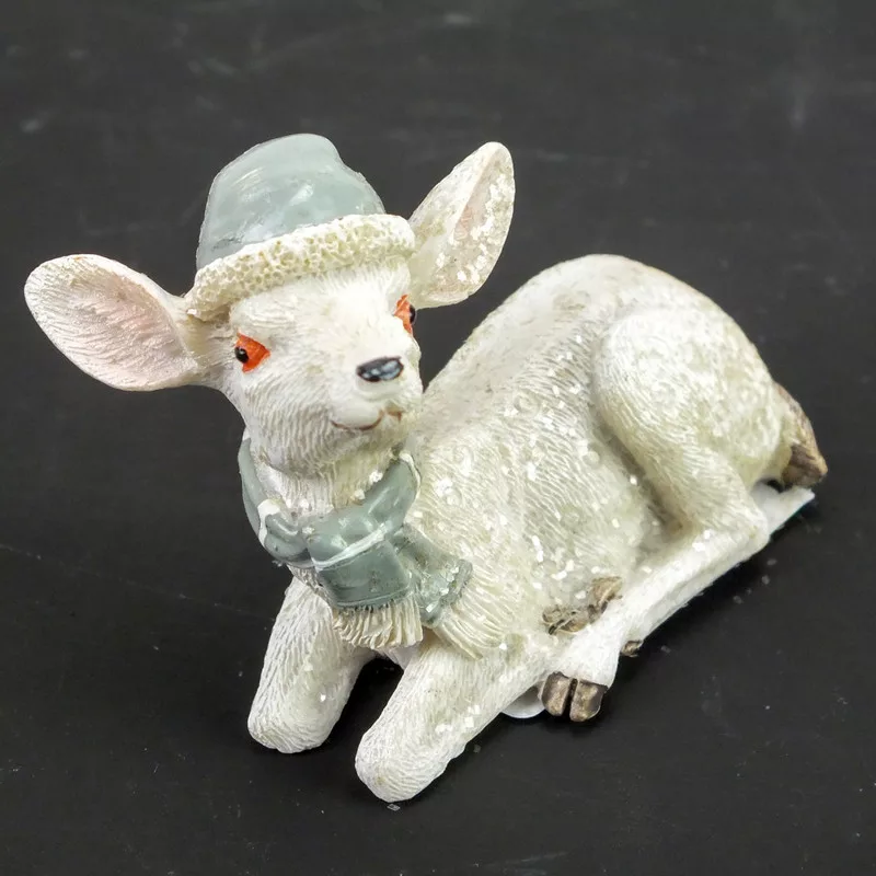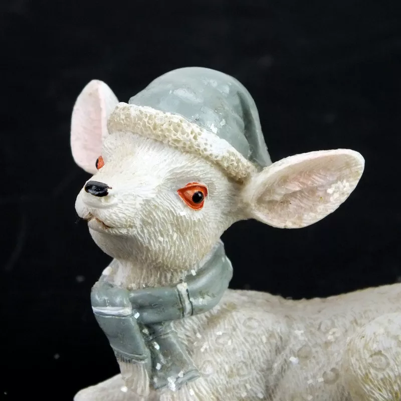 Kerámia glitteres fehér őzike sapkában 2 féle – karácsonyi dekorációhoz és koszorúhoz