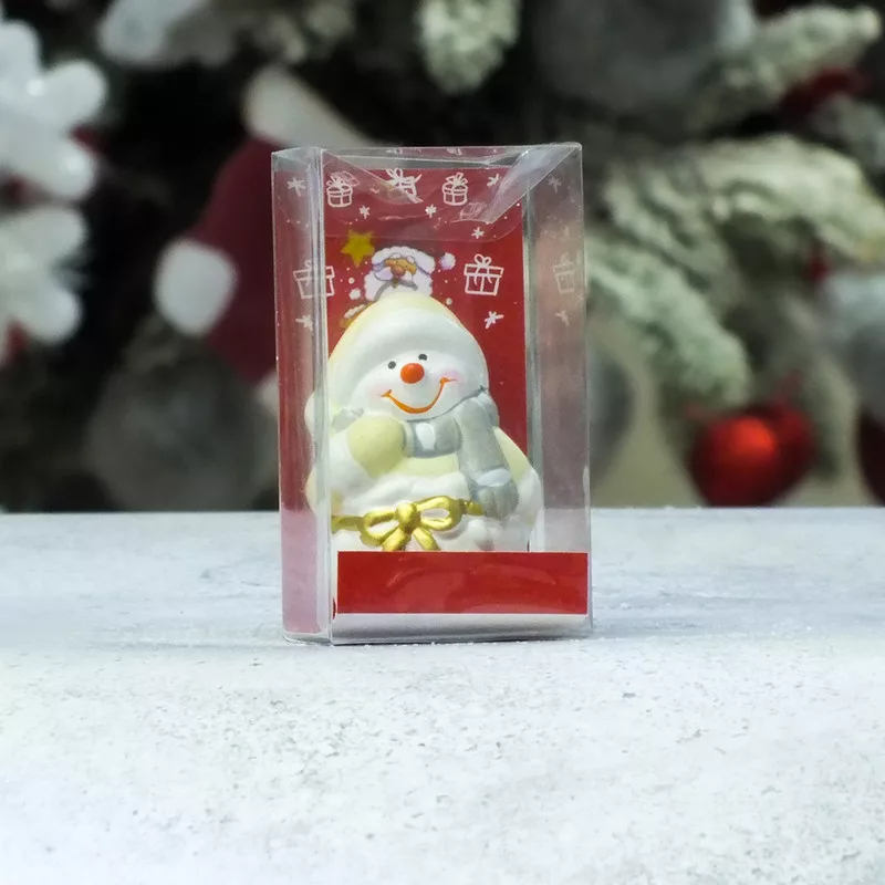 Kerámia hóember dobozban – karácsonyi dekorációhoz