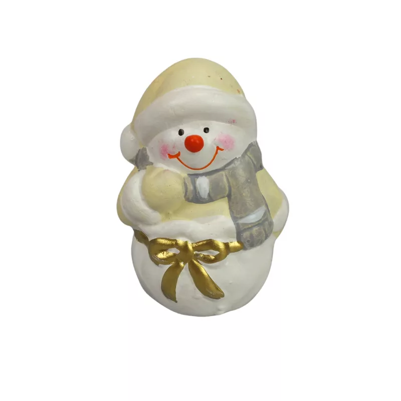 Kerámia hóember dobozban – karácsonyi dekorációhoz és koszorúhoz