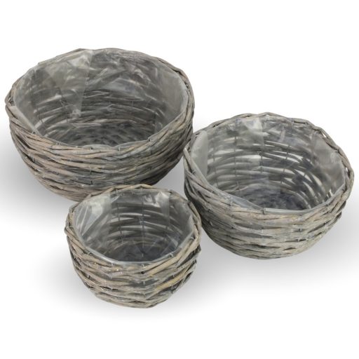 Fonott kaspó szett (3 db, bélelt)Dekoratív, természetes hatású fonott kaspó szett, amely három különböző méretű, fóliával bélelt kaspót tartalmaz. Tökéletes választás virágok, növények vagy dekorációs kompozíciók elhelyezéséhez. A bélés megvédi a fonott anyagot a nedvességtől, így élő növényekhez is használható.S 16x9cm, M 20x10cm, L 26x11cmKiszerelés: 3 db / szett