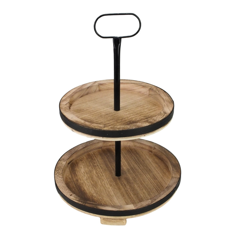 Kétemeletes barna emeletes kínáló tál. Fém vázzal, fa tálcákkal a kiváló és időtálló minőségért. Rusztikus de elegáns megjelenéssel. Édességek, gyümölcsök és sütemények felszolgálásához egyaránt alkalmas. Illetve bolti, kirakati és otthoni kompozíciók dekorációs emelvényének. Méretei: mag. kb.: 45cm, szélesség: 33cmAlsó tálca: átmérő: 33cm, magasság: 2,8 cm, mélység: 2cmFelső tálca: átmérő: 26cm, magasság: 2,8 cm, mélység: 2cm
