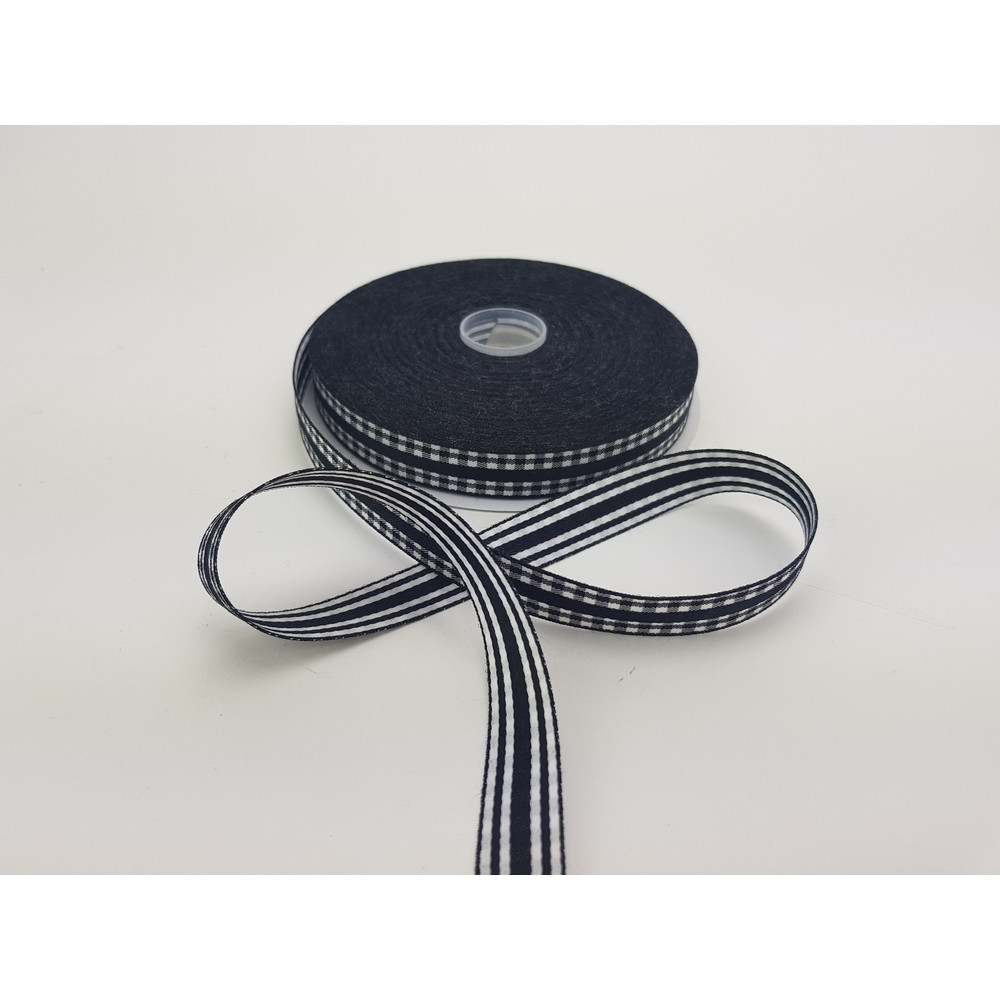 Textil szalag tekercsben. Díszcsomagoláshoz, asztal és ajtódíszekhez, kreatív alkotásokhoz.Kétoldalú! Külső oldala kockás, belső csíkos.Hossz.: 22.5 méter~. Felhasználható csomagoláshoz, koszorúhoz, dekorációhoz és ajándékok díszítéséhez.