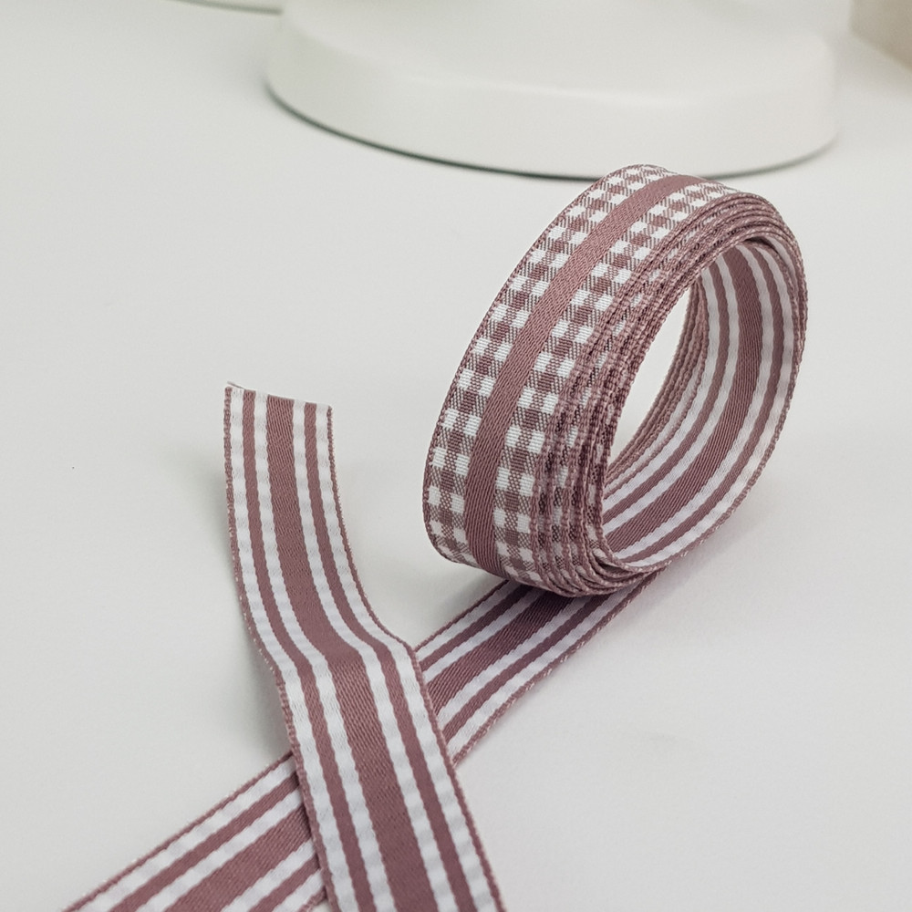 Textil szalag díszítésekhez, díszcsomagoláshoz, asztal- és ajtódíszekhez, kreatív alkotásokhoz.Kétoldalú minta! Külső oldala kockás, belső csíkos. Felhasználható csomagoláshoz, koszorúhoz, dekorációhoz és ajándékok díszí