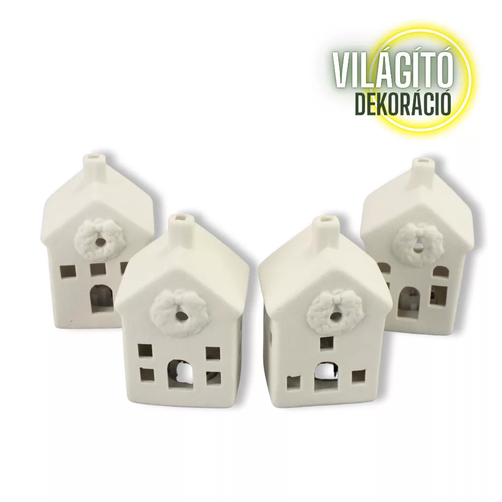 Kifesthető világító házikó 10 cm (4 féle) – karácsonyi dekorációhoz és koszorúhoz