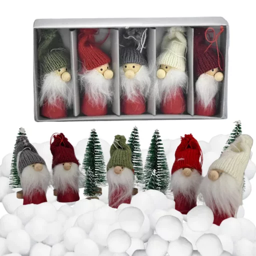 Kötött sapkás manók 5db/doboz – karácsonyi dekorációhoz