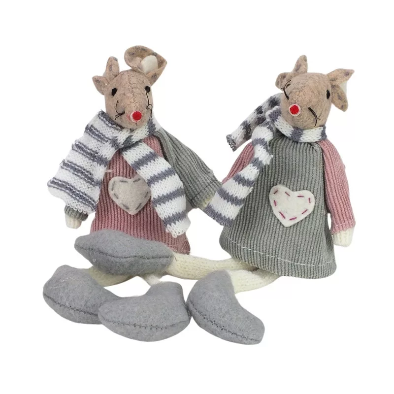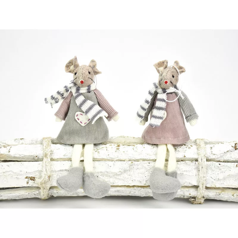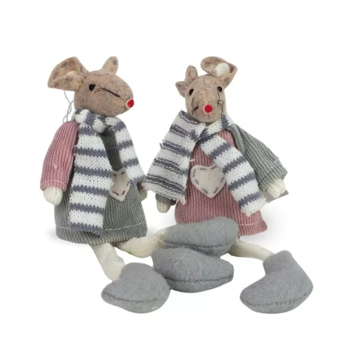 Lógólábú egér rózsaszín-szürke 2db/csomag – karácsonyi dekorációhoz