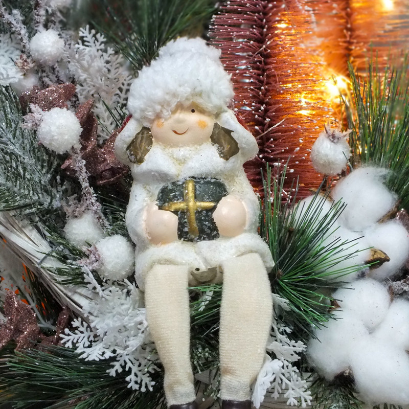 Lógólábú gyermek ajándékkal – karácsonyi dekorációhoz és koszorúhoz
