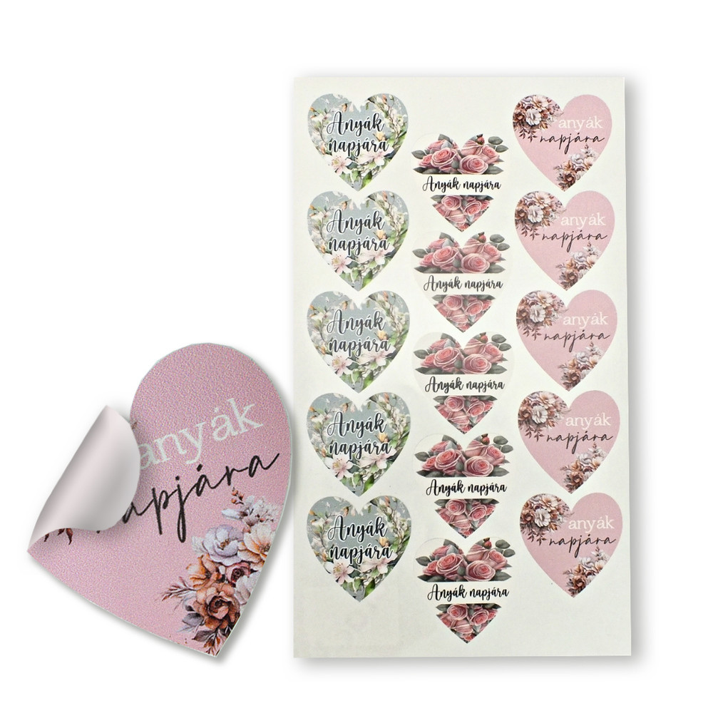 Matrica - anyák napjára szív 3 féle 15db/lap – ballagási ajándékhoz és emlékdekorációhoz