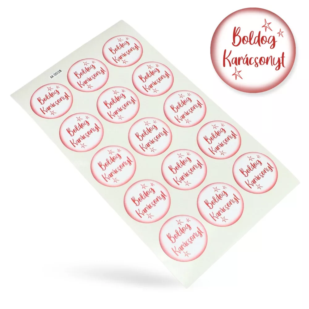 Matrica - Boldog karácsonyt fehér-piros 15db/lap – karácsonyi dekorációhoz