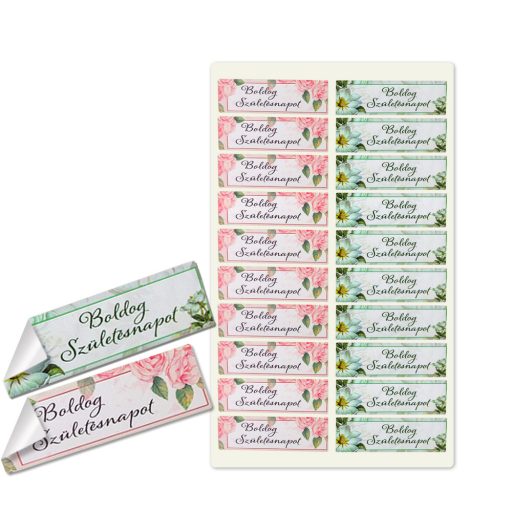 Matrica - Boldog születésnapot virágos matrica 20db/lap – kreatív hobby projektekhez